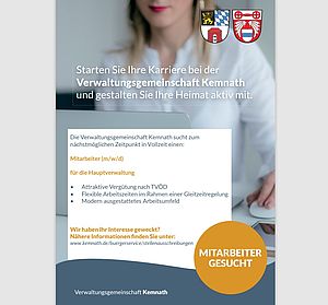 Die Stadt und die Verwaltungsgemeinschaft Kemnath haben wieder Stellen in verschiedenen Bereichen zu vergeben: