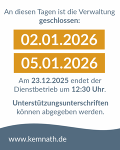 Die Verwaltung ist an folgenden Tagen geschlossen: