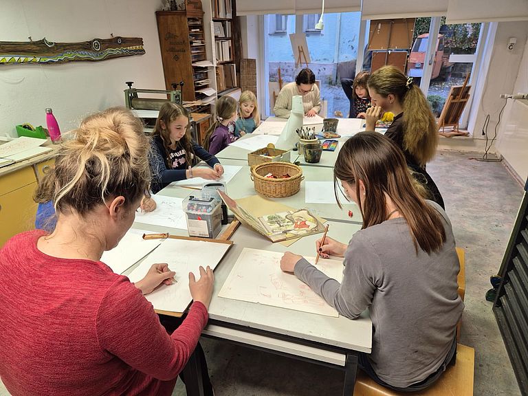 Am 3. November verwandelten sich die Stadtbücherei und das Atelier an der Stadtmauer in einen Ort voller Fantasie und Kreativität. Bei dem Herbstferienprogramm „Gemalte Gedichte“ lauschten die Schulkinder zunächst dem bekannten Gedicht „Herr von Ribbeck auf Ribbeck im Havelland“ von Theodor Fontane, das die Geschichte des großzügigen alten Herrn von Ribbeck und seinem Birnbaum erzählt. Anschließend malten sie gemeinsam mit der Künstlerin Susanne Vonhoff ihre eigenen Bilder dazu.