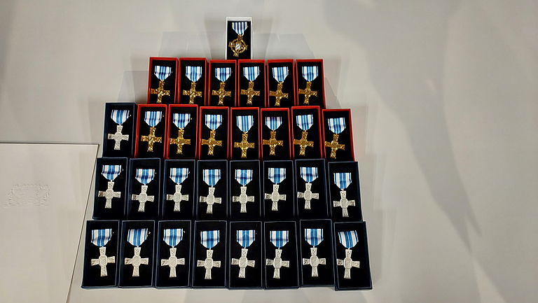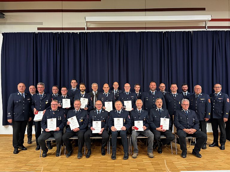Begleitet wurden die insgesamt 31 Ausgezeichneten von ihren Kommandanten, Vereinsvorständen und den beiden Bürgermeistern.